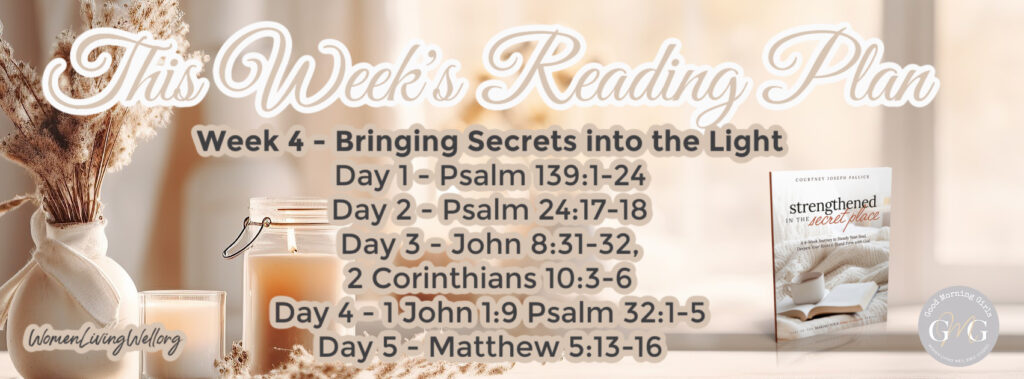 On this final week Strengthened in a secret place, we’re speaking about what occurs after we cease hiding and convey our secrets and techniques into God’s mild.