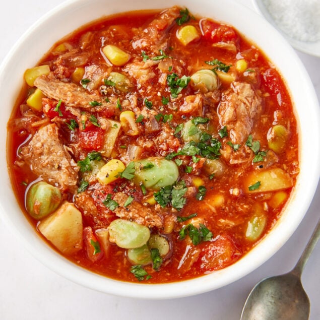 When winter rears its chilly, ugly head, I begin planning my meals for the bowl, the place all I want is a spoon, a bit of bread, and perhaps my grandmother’s previous woolen blanket thrown over my shoulders. I’ve my tried and true bone broth hen noodle soup (with chili oil and a touch of cayenne to heat the bones). Then there’s my spouse’s vegan chili, which tastes meatier than most traditional chili. However once I’m feeling significantly carnivorous, I make a stew, one in every of my present favorites being Brunswick Stew.
