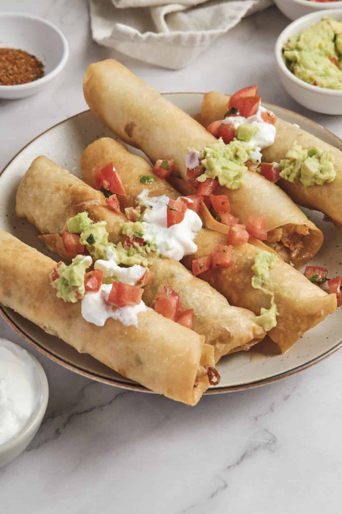 Warmth the rapeseed oil in a big pan to a medium -high temperature till it reaches 375 ° F. Work in doses, frying flautas till they’re golden brown on all sides, about 1 to 2 minutes per dose. Switch the flaut to a plate lined with a paper hand to launch extra oil.