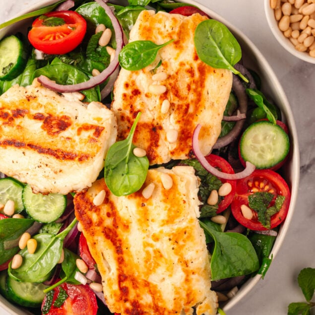 Identified and cherished for its excessive melting level, halloumi cheese is a bit tougher than most different cheeses, so it may be grilled and fried simply with out melting in all places. Grilled halloumi with a golden brown exterior and a chewy, easy inside enhances this colourful salad superbly. It affords a barely crunchy and tremendous spicy addition to a vivid mixture of contemporary greens. So not solely is halloumi straightforward to work with, it is also very straightforward to get pleasure from.