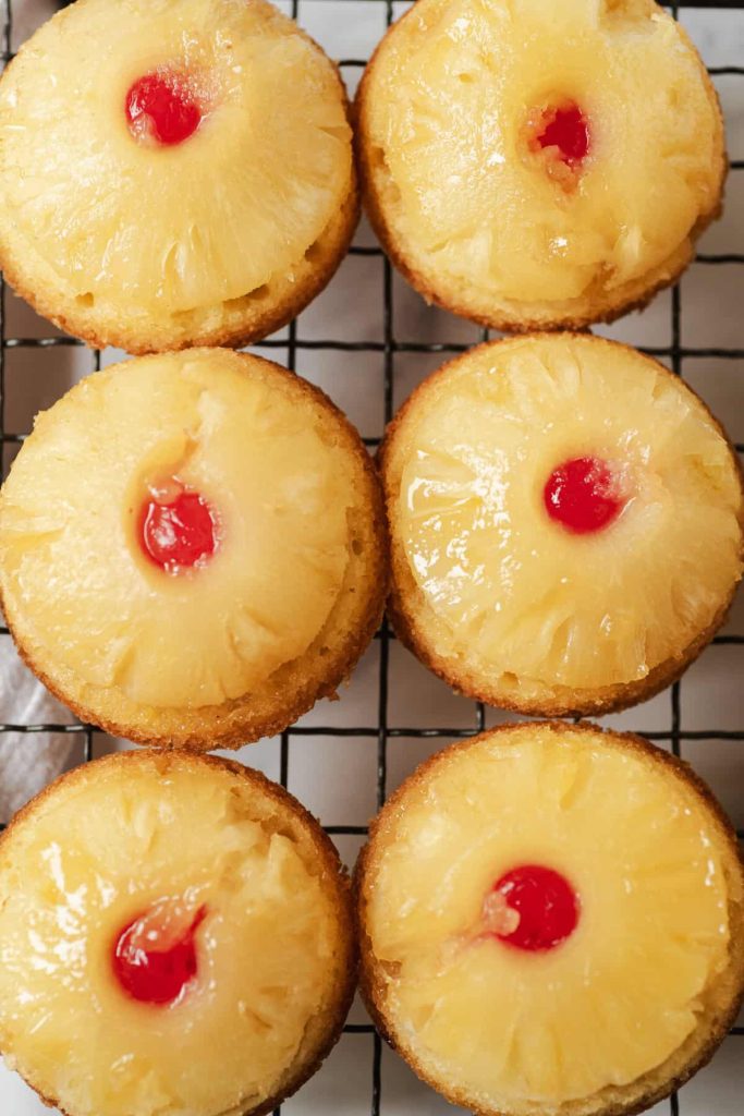 To make this recipe for a 9-inch cake pan, soften 1/4 cup of butter and blend with brown sugar after which evenly unfold over the underside of the greased 9-inch spherical cake pan. Prepare 12 pineapple circles right into a single layer over a combination of sugar (they will overlap barely) and place the icing within the heart of every ring. Put together the cake dough simply as it’s written and pour it evenly on the association of the pineapple. Bake at 350 ° F for 30-35 minutes (about 5-10 minutes longer than the mini model) till the toothpick inserted within the heart is clear. Enable to chill for five minutes, then decrease the knife across the edges and inverted to the serving plate whereas it’s nonetheless heat.