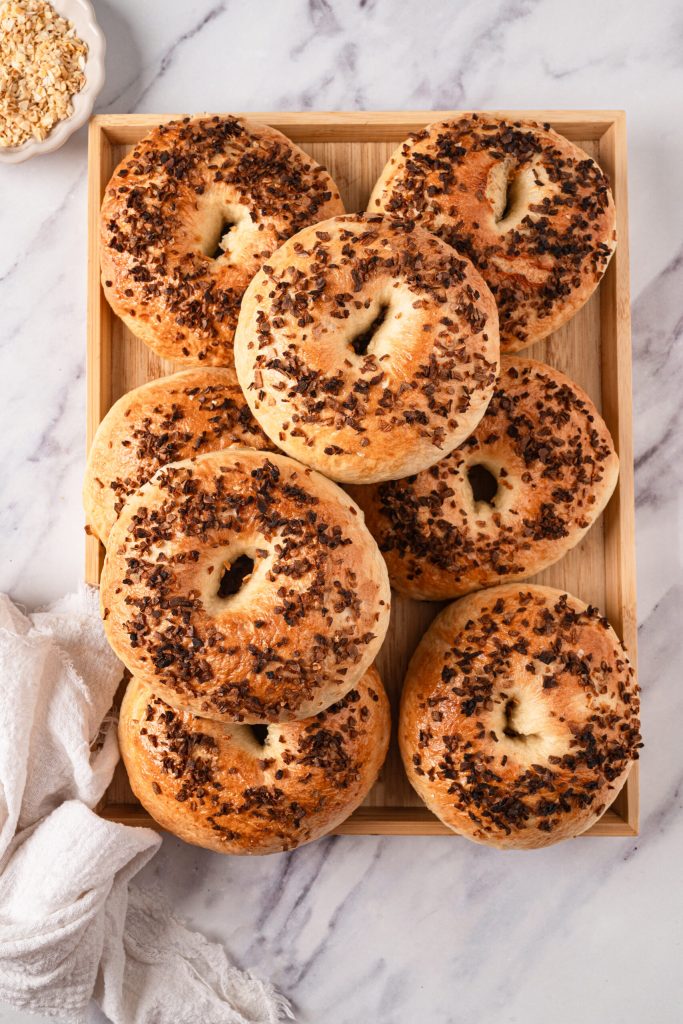 Place boiled bagels on baking sheets with parchment. Instantly sprinkle each bagel with dried onions. Whether it is fascinating, clear the egg washing on a lightweight weight on a shiny floor. Preheat the oven to 400 ° F and bake bagels for 20-25 minutes till they’re golden brown. Let the bagels cool on a wire stand earlier than serving.
