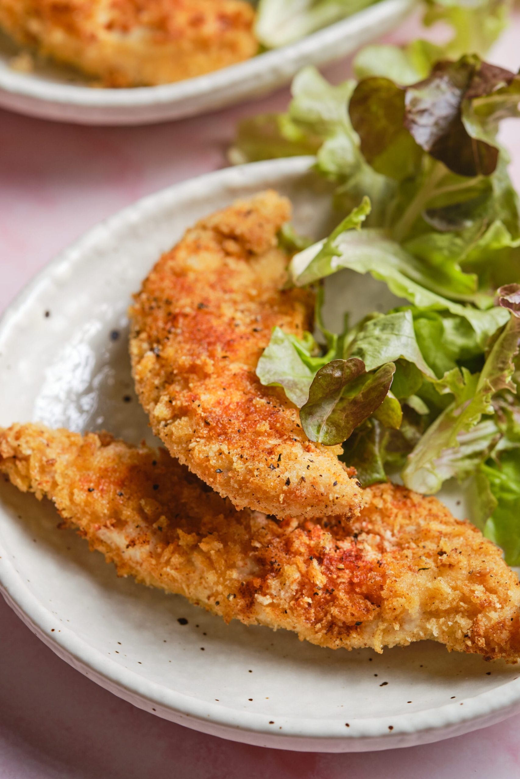 This recipe requires Panko breadcrumbs, that are decrease in energy than conventional breadcrumbs. In addition they soak up much less moisture than common breadcrumbs, holding the rooster extra tender and lighter.