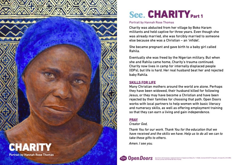 In northern Nigeria, a lady who attended an artwork workshop referred to as Charity was kidnapped by Boko Haram and held captive for 3 years. [After being freed by the Nigerian military] Charity stated: “I can recount three completely different events after I was overwhelmed by my husband as a result of I got here again with the kid. I advised him: 'I didn't do it of my very own free will. I used to be pressured and there was nothing I may do.'